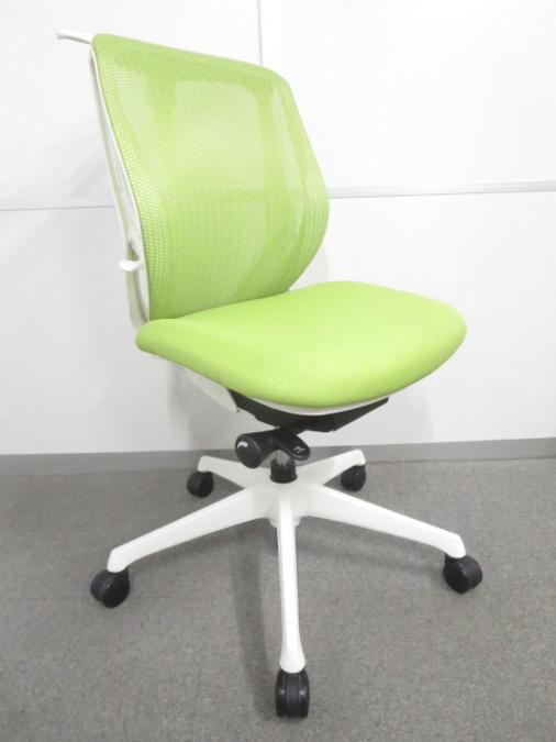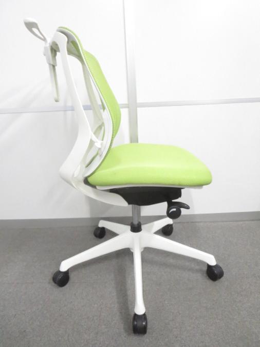 【前傾ポジションをお試し下さい!!】オカムラ シルフィーチェア ハンガー付【ライムグリーン】- 茨城南店
