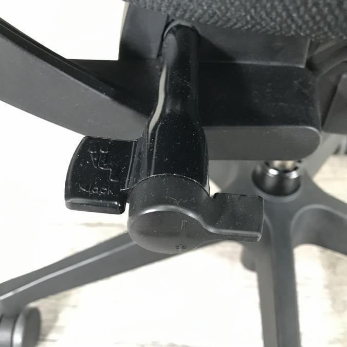 - 座面下のレバー操作により、座面を50mmのストローク(16.7mmピッチ)で好みの位置に調節できます。体格や作業姿勢に合わせたポジション設定が行えます。