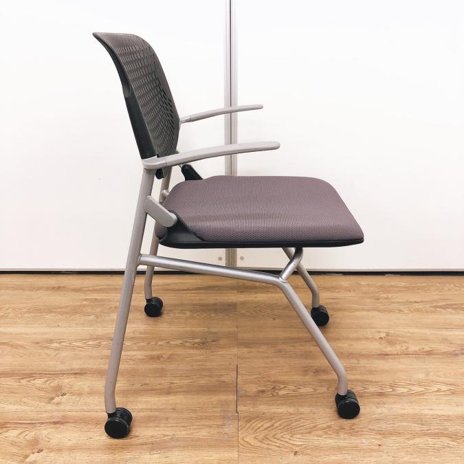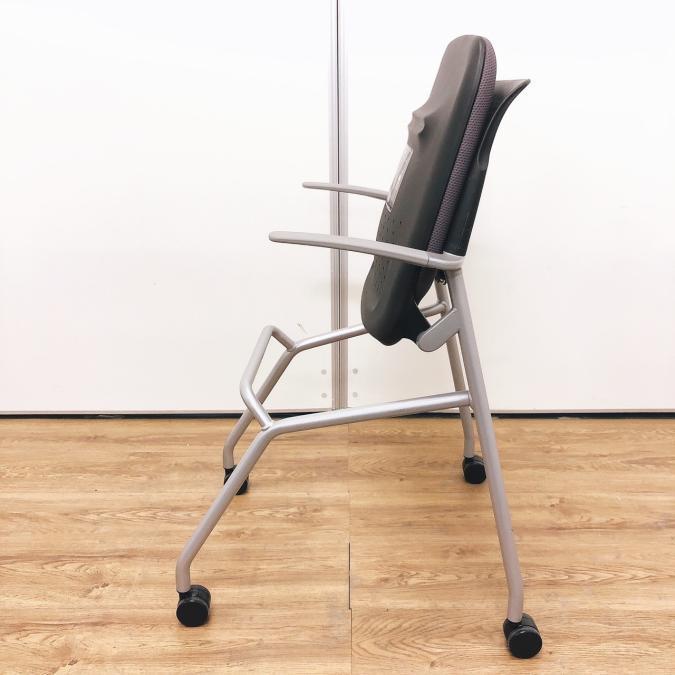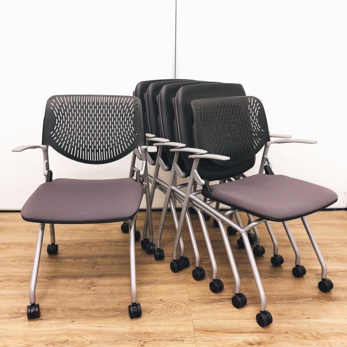 【6脚セット】 オカムラ okamura ルナ ネスティングチェア グレー 肘付き ロット入荷 キャスター付き 会議 ミーティング セミナー- 大阪梅田本店