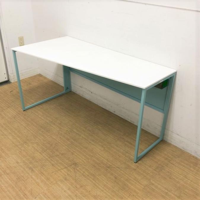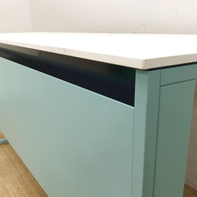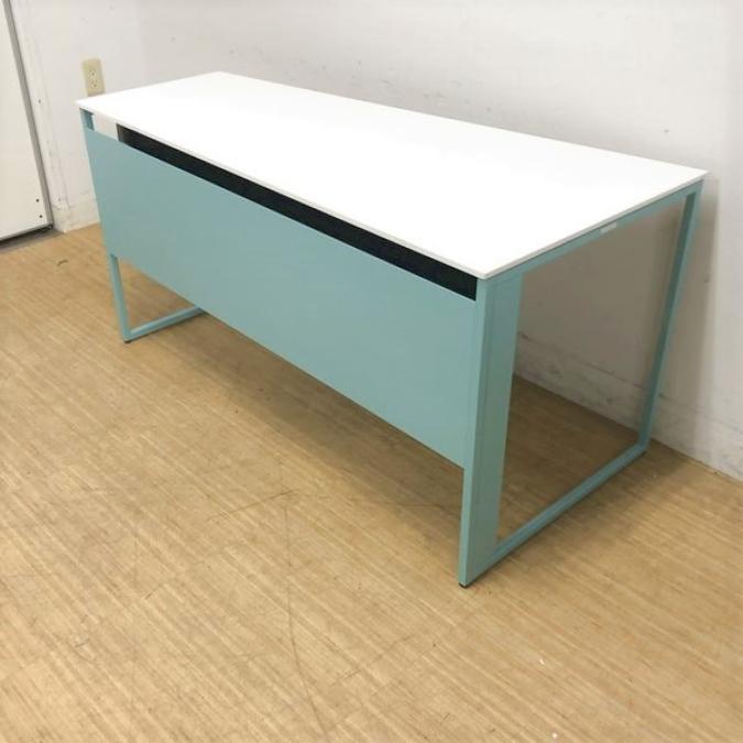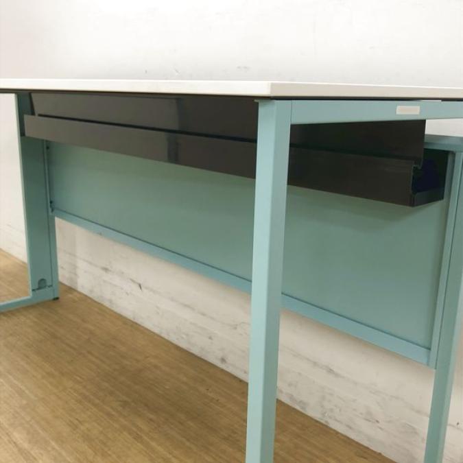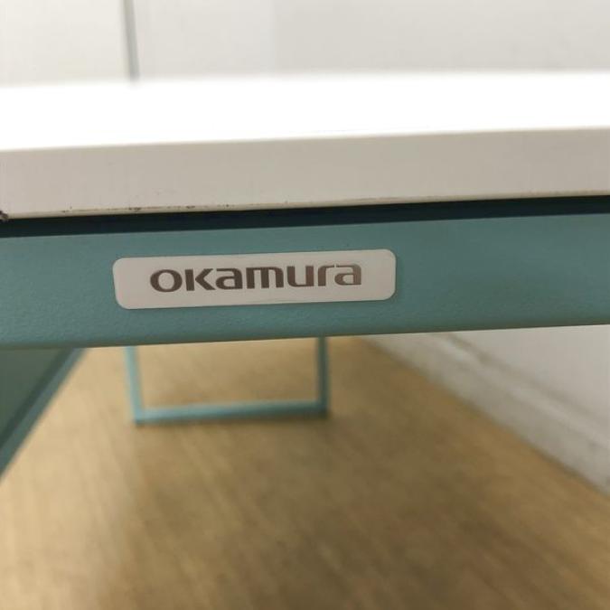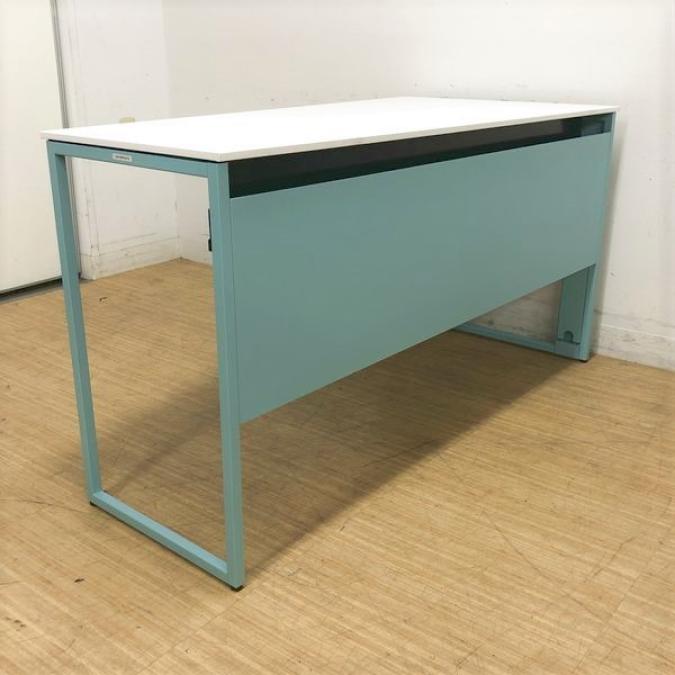 【在庫入替セール】オカムラ ソリスト フレーム脚タイプ 台形天板(左) 本体:セージ 天板:ホワイト W1400- 名古屋千種店