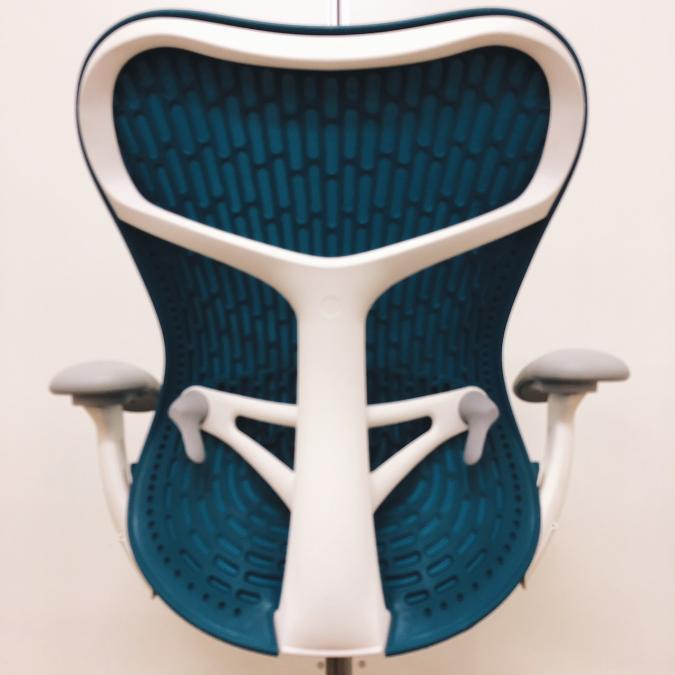 ミラ2チェアの特徴的な背面「バタフライバック」は、