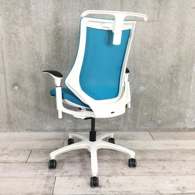 姿勢の変化にフレキシブルに対応!スタイリッシュで座り心地も抜群な大人気の高機能チェアが入荷! ■イトーキ(ITOKI) エフチェア(f)/ストロングブルー×ホワイトフレームメッシュ 背面メッシュ コートハンガー付・可動肘付 旧タイプ