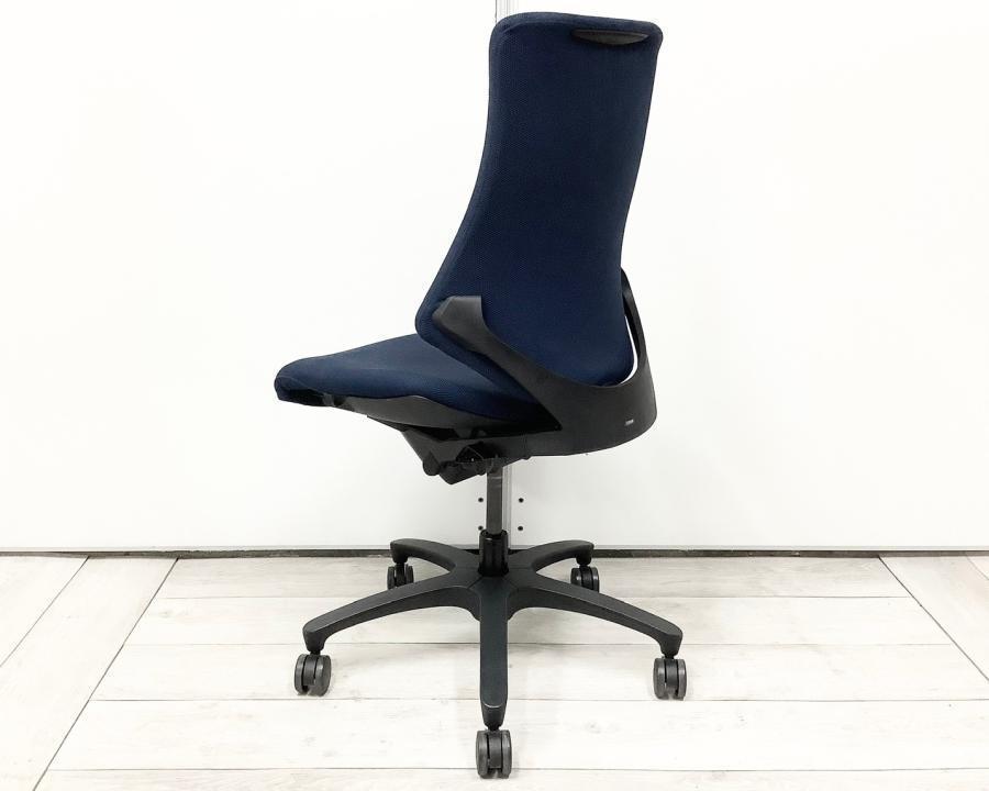 【姿勢の変化にフレキシブルに対応!座り心地も抜群な高機能チェア!】■イトーキ(ITOKI)製 エフチェア 肘無しハイバック クロスバックタイプ ■ネイビーブルー×ブラックシェル〈岐阜・愛知・三重・静岡・福井〉