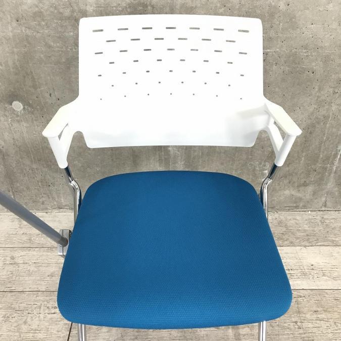 【コクヨ(KOKUYO)製 ピエガ(Piega)】■スッキリ収納可能!■ミーティングや休憩スペースにオススメ!!平行スタッキングチェア!■背樹脂タイプ メモ台付き ■色:ブルー(座面)×ホワイト(フレーム)【弊社使用欄:A00910507】- なんば日本橋店