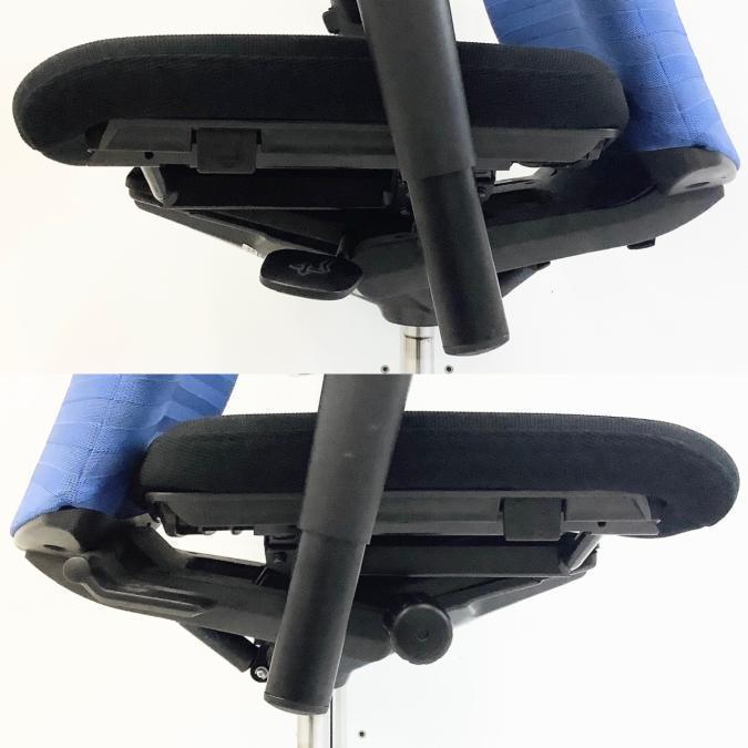 - 深く座りたい人、浅く座りたい人など利用者にあった形で座面が前後45mm範囲で調節できるので、腰の負担を軽減します。