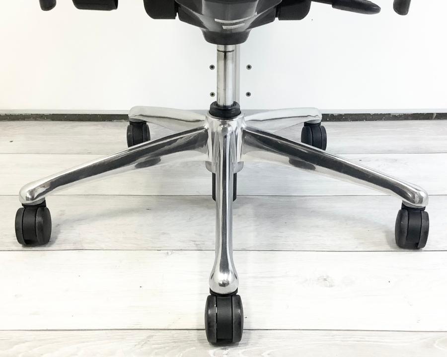シャープな印象を強調するアルミ脚と直径60mmのキャスターが、安定感と動きの自由度を高めております。