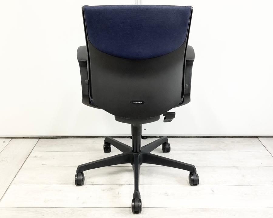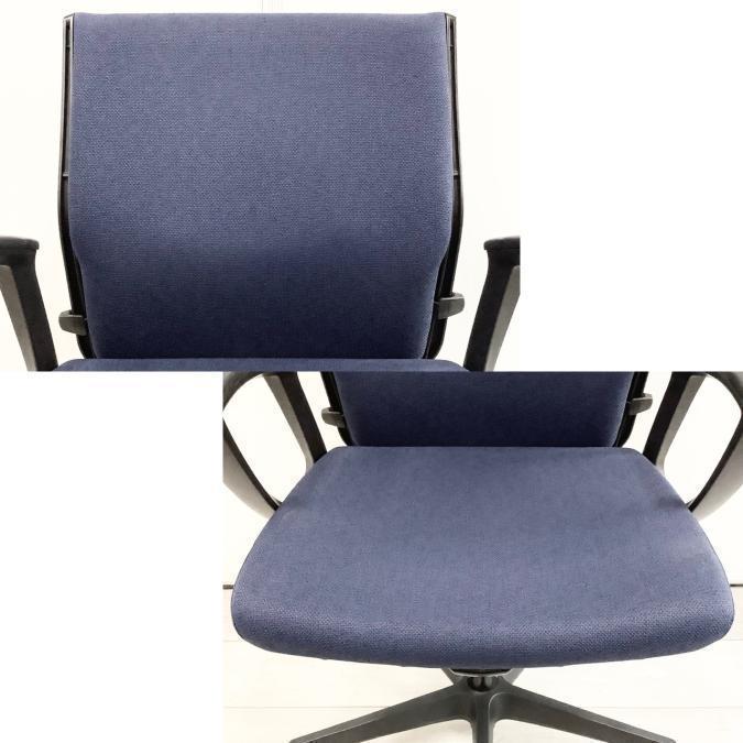 【関西倉庫在庫】■オカムラ(okamura)製 エスクードチェア 肘付ローバックチェア ■ダークブルー×グレーシェル ■デザインアーム ■ランバーサポート 【弊社使用欄:A01029268】
