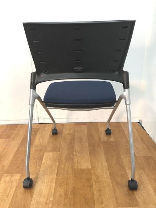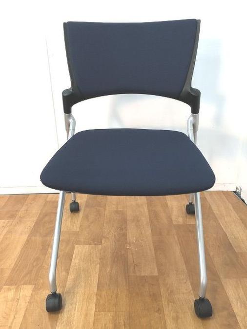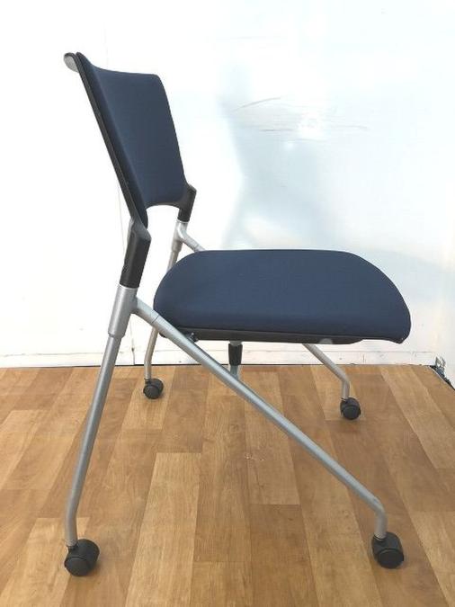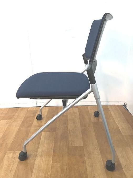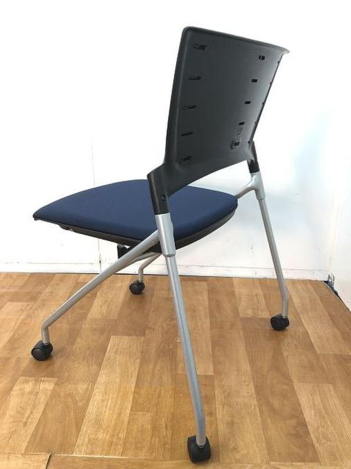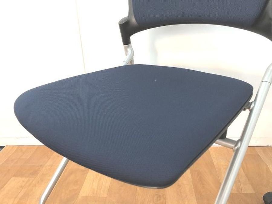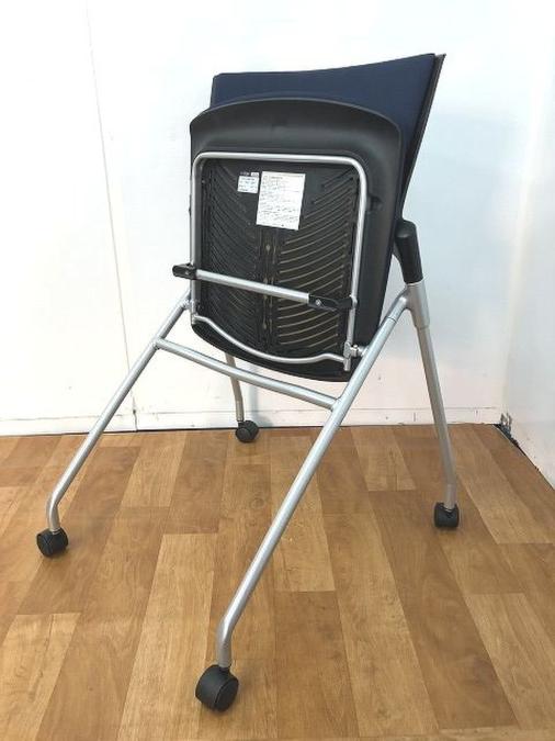 【セミナーや会議用にオススメ!平行ネスティングで省スペース化!】■イトーキ製 マノス ネスティングチェア ■背パッド付 キャスター付き ■ネイビーブルー オフィスバスターズ心斎橋店 ロット在庫