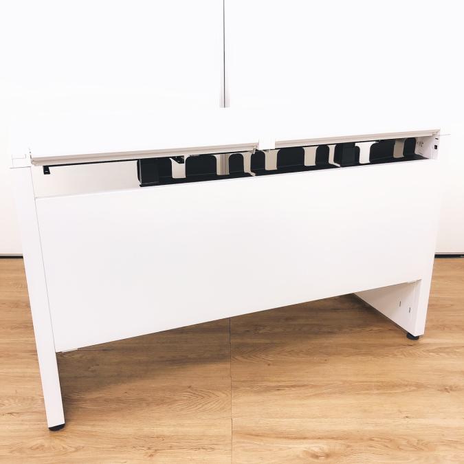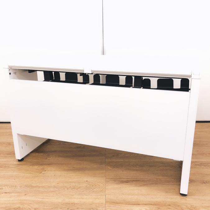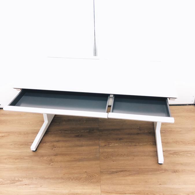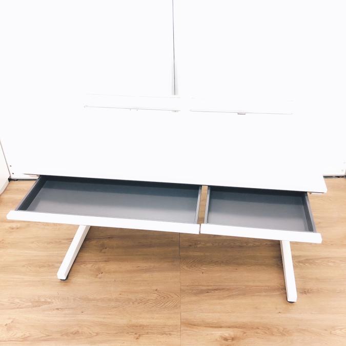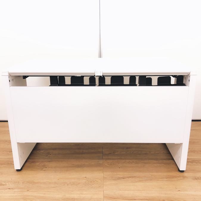 定番のホワイト色です。どんな場面テレワークや会社でも様々なシーンで活躍してる人気なデスクです。