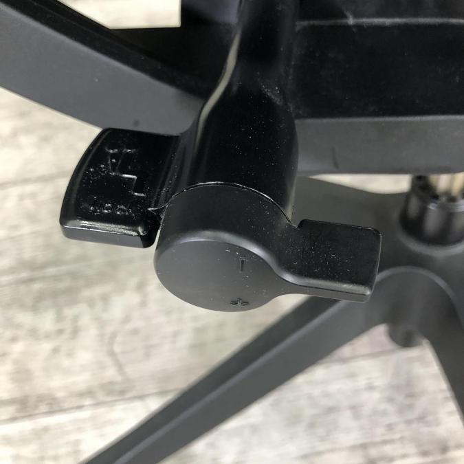 - 座面下のレバー操作により、座面を50mmのストローク(16.7mmピッチ)で好みの位置に調節できます。体格や作業姿勢に合わせたポジション設定が行えます。