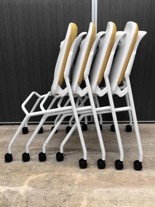 【関東倉庫在庫品】【シンプルなデザインで使いやすいミーティングチェア!】【在庫入替セール品】■オカムラ製 ルナ ネスティングチェア ■イエロー【弊社使用欄:A01021721】【ECBMC】
