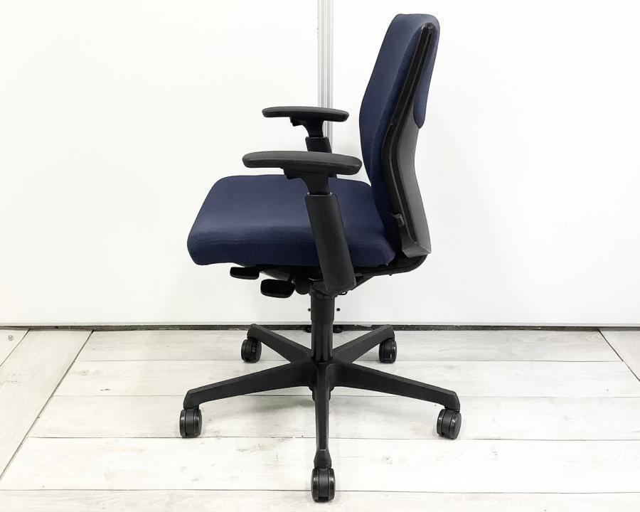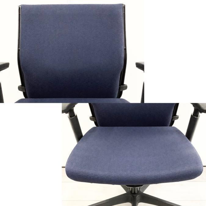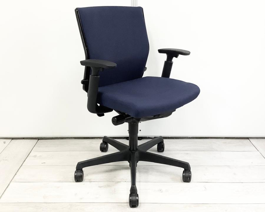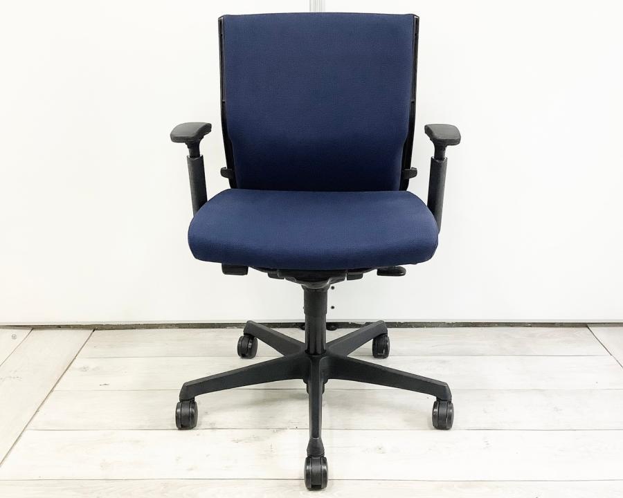 【在庫入替セール】【2脚限定】【基本性能を向上させたワンランク上のスタンダードモデル!長時間のデスクワークもランバーが快適にサポート!】■オカムラ(okamura)製 エスクードチェア(ESCUDO) 肘付き ローバックチェア ■ダークブルー×グレーシェル ■デザインアーム ■ランバーサポート【T2】