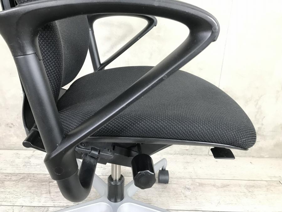 例えば、座面は、イトーキ独自の"ベンディングシート"という機構により、クッション、インターシェル、空洞という三層構造になっています。 この真ん中に挟まっているインナーシェルが、着座時の姿勢に合わせて体重を分散してくれるので、どんな姿勢でも体になじみ、疲労を軽減してくれます。 さらに、座面は前後に4センチほど奥行きを調整でき、前傾姿勢で座りたい、深く腰掛けたい、膝裏を圧迫されたくないなど、個人の好みに合った快適さにカスタマイズが可能となっています。