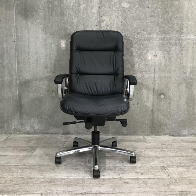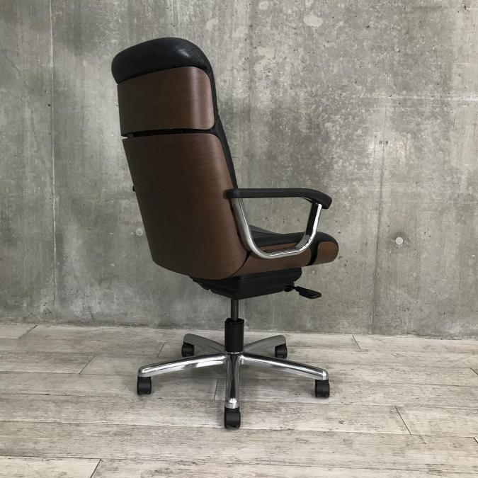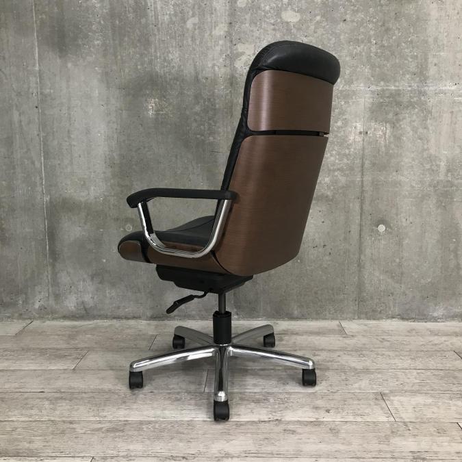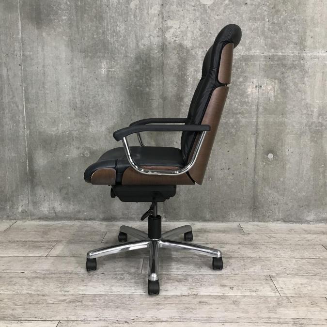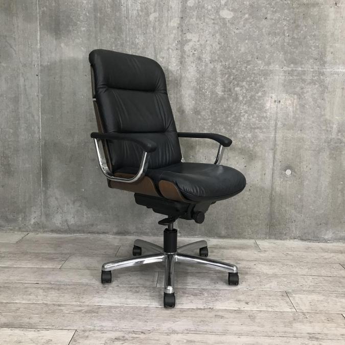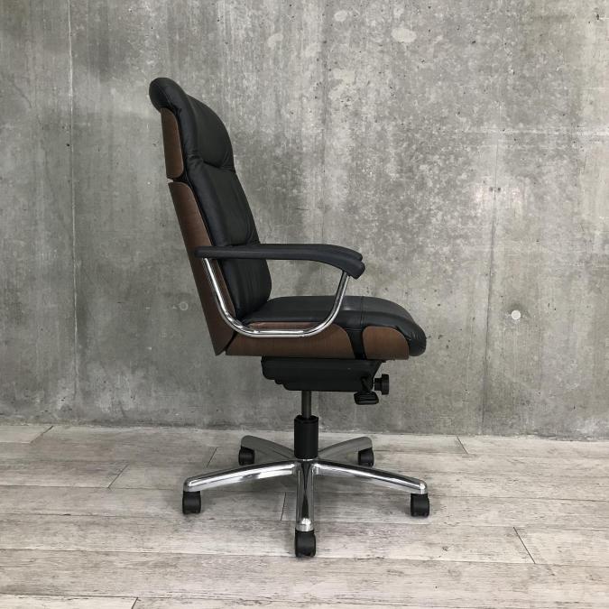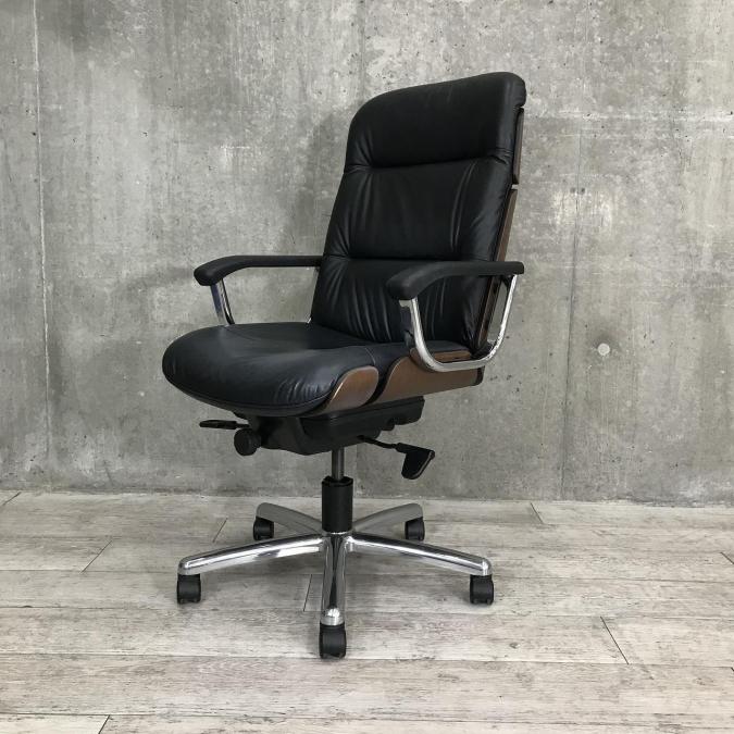 【重厚感のあるレザー仕様!】【背裏にはウォールナットの板がついていてオシャレ!】 内田洋行(UCHIDA)EXシリーズチェア ■色:ブラック【RP】- 埼玉本店