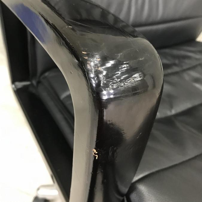 - かなり強い濃い黄ばみ・変色が商品全体にある。(例、座面・背もたれ、脚部等にある。)