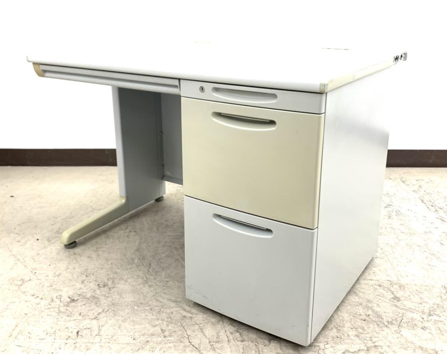 【コンパクトでスタンダード!使いやすい引き出し付きデスク!】■オカムラ(okamura)製 SD-Vシリーズ 平机+ワゴンセット(片袖机) 引き出し付き W1000㎜ ■ライトグレー ※ワゴンは在庫状況によって変動致します。