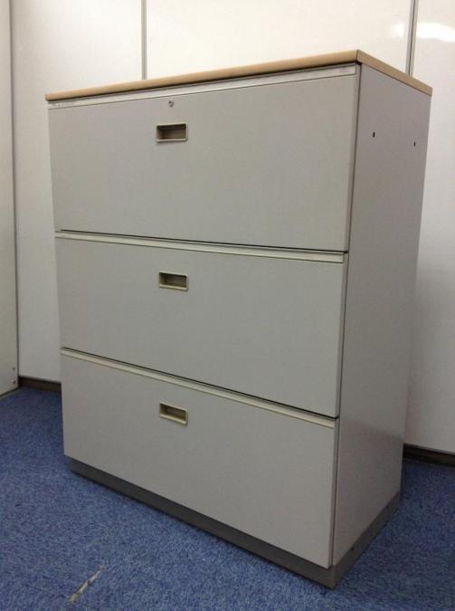 【在庫入替セール品!】【ファイル収納に便利な引出し型キャビネット!】■イトーキ シンラインシリーズ 3段ラテラル書庫 ※取っ手に日焼けがあるためお安く!【ITOKI THIN LINE CABINET】