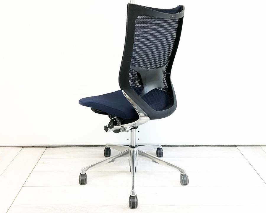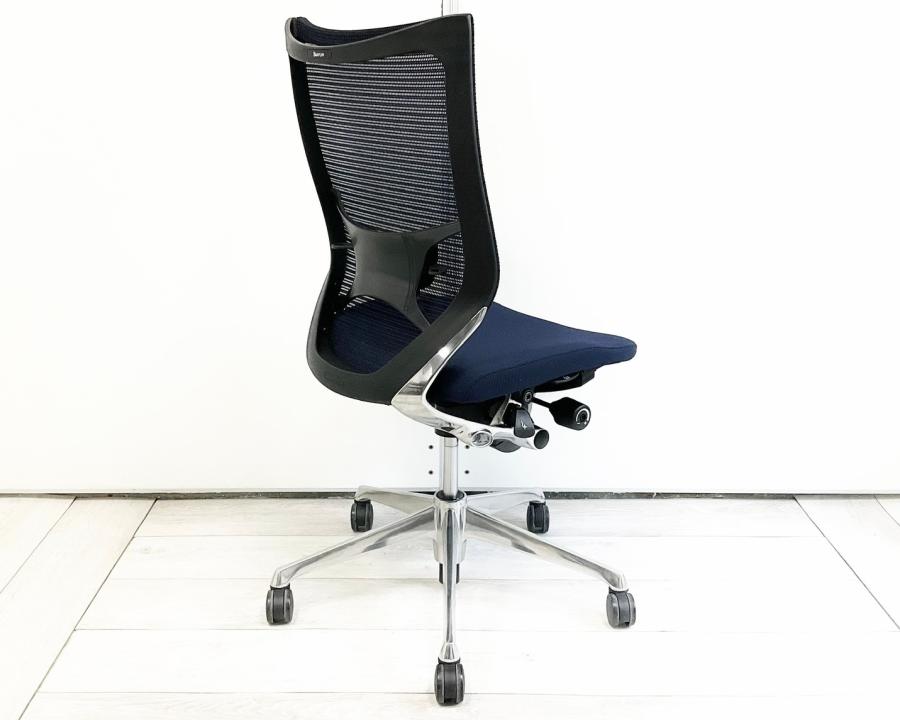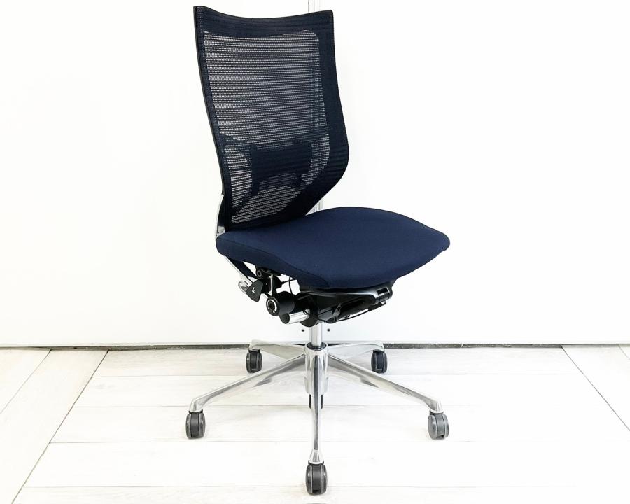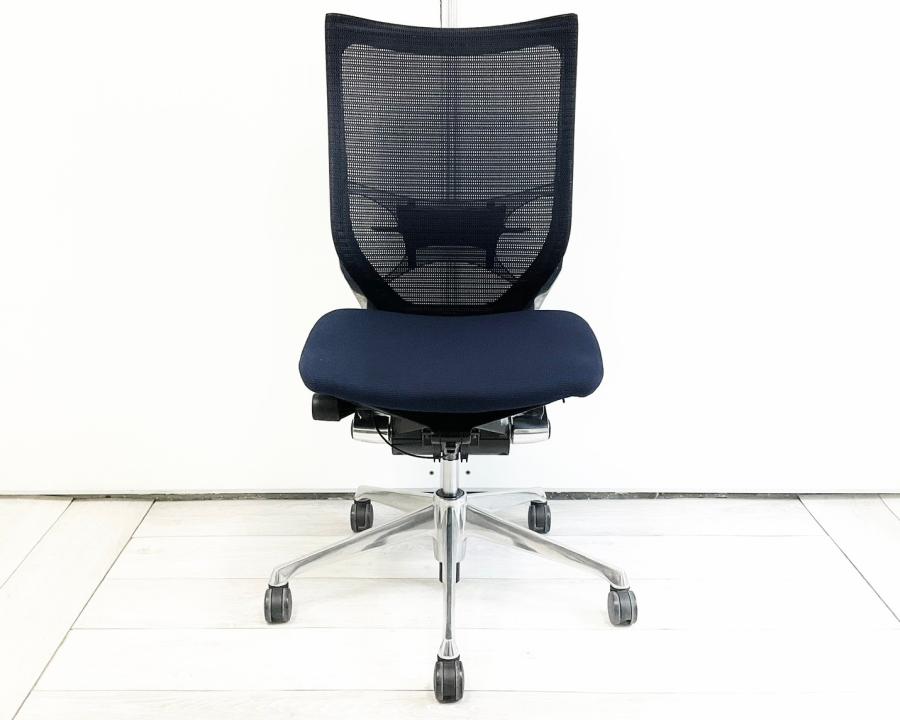 【長時間の着座でも疲れにくいサポート感!】■オカムラ(okamura)製 バロンチェア(Baron) 肘無し ハイバック ■メッシュ ■ダークブルー 【ベストなポジションが得られる先進設計!】〈岐阜・愛知・三重・静岡・福井〉