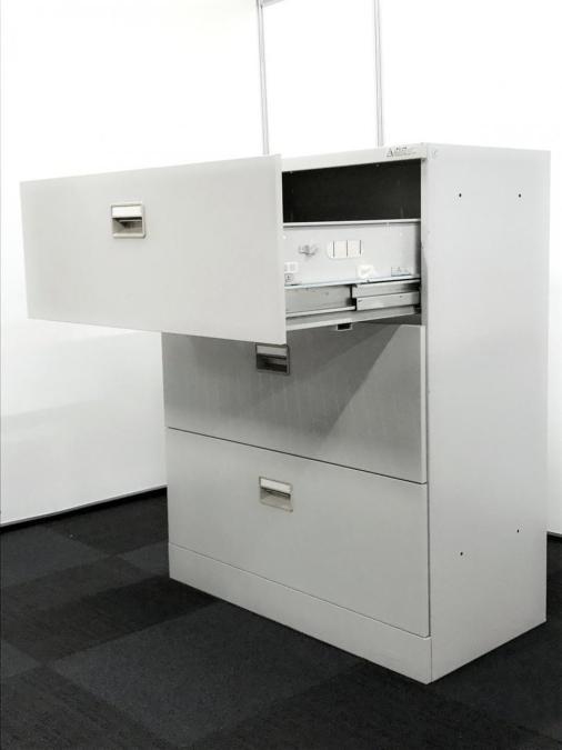 - 多数不具合あり引出の開閉不可、施錠不可、棚板無しといったその書庫の本来の効用を果たすための機能以外の多数が使用不可(例、扉、引出の開閉がしづらいなどがある。 )