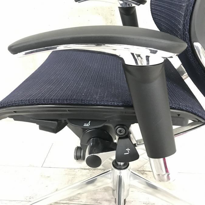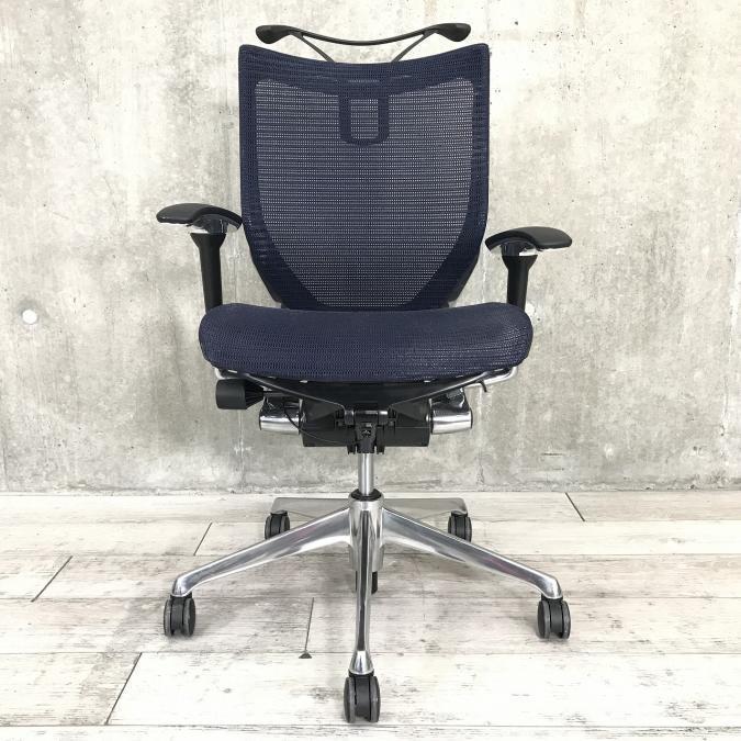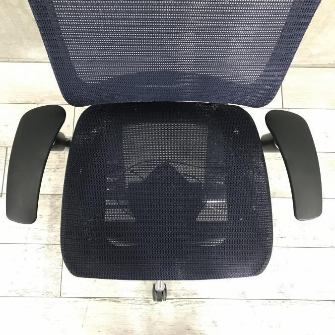 【硬めのメッシュ座面が大人気!国産メッシュチェアの代表格!】■オカムラ(okamura)製 バロン(Baron)チェア ハイバック 肘付き ■背面メッシュ ■固定肘 ■色:ダークブルー ■ハンガー付き【IB】