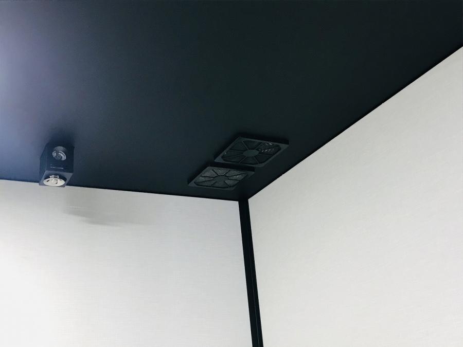 天井の換気ファンにより、ブース内の空気を常に新鮮な状態にします!