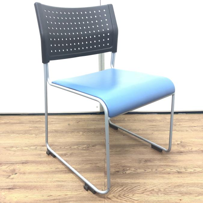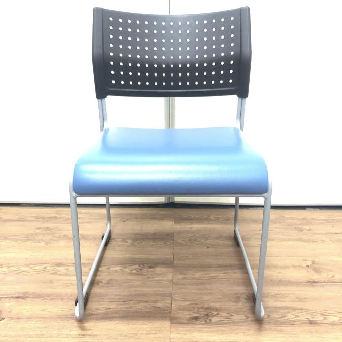 【限定20脚】 スタッキングチェア 収納 アイリスチトセ ミーティングチェア 研修 会議 打合 ブルー ビニールレザー コスト重視 おすすめ- なんば日本橋店
