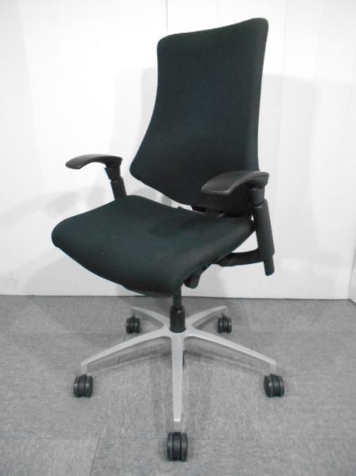 【三次元フォルムが腰にフィット!】希少なエラストマータイプ! ■イトーキ製 エフチェア 肘付 ブラック ハイバック ■姿勢の変化にフレキシブルに対応!