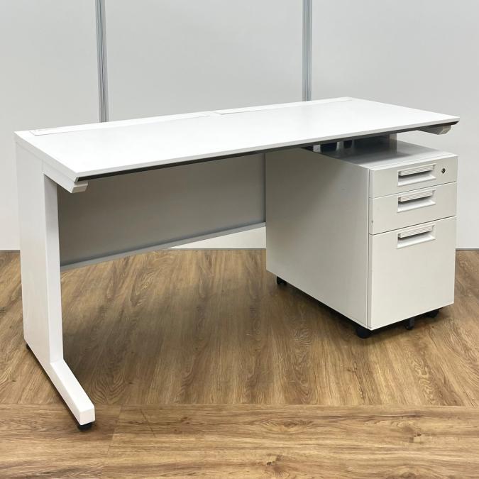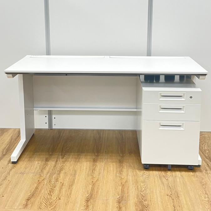 【平机+3段ワゴンセット】コクヨ製 ISシリーズ W1400平机 プラス製 3段ワゴン!!- 京都東寺店