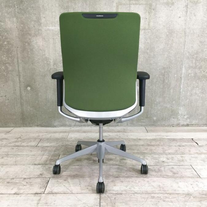 【在庫入替セール(本在庫限定価格)】異硬度クッションに優しく包まれる!■オカムラ コーラルチェア 可動肘付 ダークグリーン A00885388- 川崎店