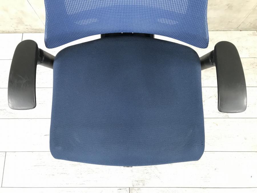 【姿勢の変化にフレキシブルに対応!スタイリッシュで座り心地も抜群な高機能チェア!】■イトーキ(ITOKI)製 エフ(f)チェア 肘付き ハイバック 背面メッシュ ■可動肘 ■ネイビーブルー ×ブラックシェル【2510】弊社使用欄【A01040263】