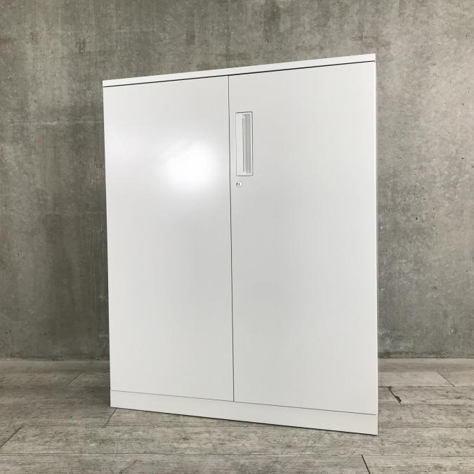 【収納物がひとめで分かる両開き戸タイプ!】■コクヨ(KOKUYO)製 エディア(EDIA)シリーズ 両開き書庫 ローキャビネット H1130㎜ ■天板・ベース付 ■ホワイト ■シリンダー錠
