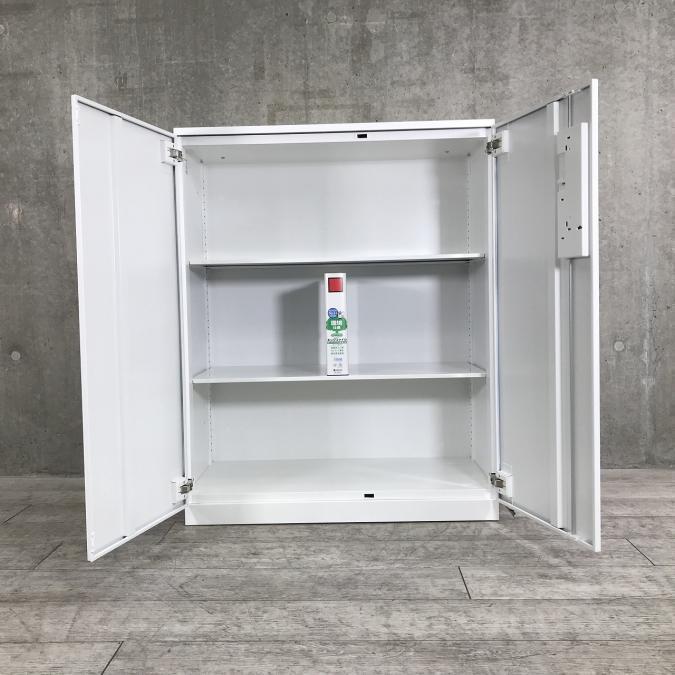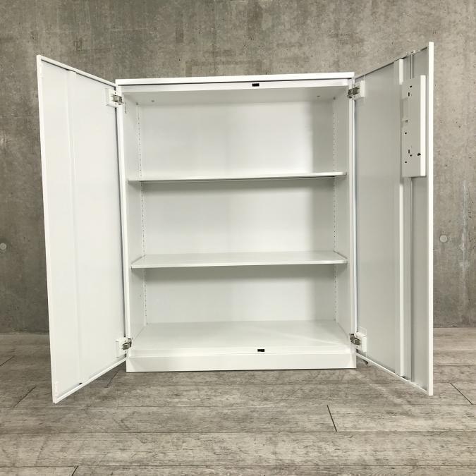 【収納物がひとめで分かる両開き戸タイプ!】■コクヨ(KOKUYO)製 エディア(EDIA)シリーズ 両開き書庫 ローキャビネット H1130㎜ ■天板・ベース付 ■ホワイト ■シリンダー錠【IB】