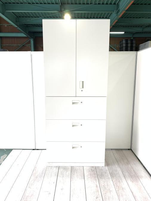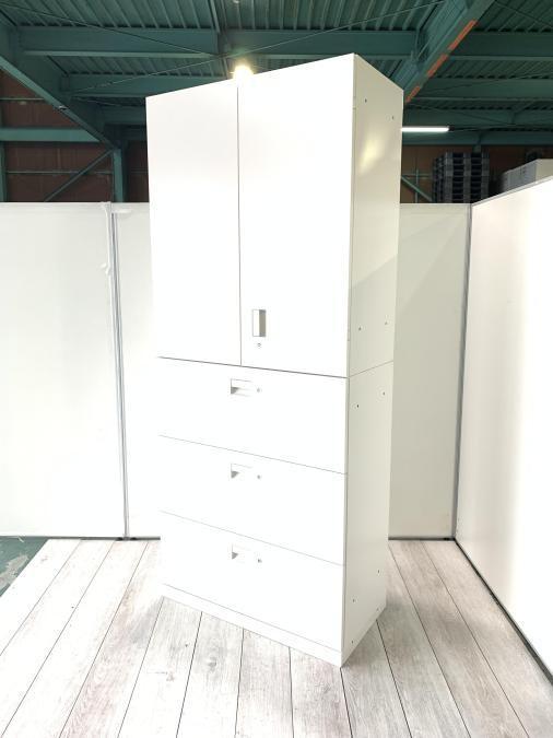 【1台限定】イトーキ エスシリーズ 上下書庫セット 両開き+3段ラテラル シリンダー錠 ホワイト- 東大阪店