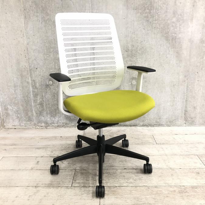【8脚入荷】ホワイトフレーム&イエローグリーンシートの2トーンカラー!ベルガー (BELGER)※固定肘掛け仕様◆コクヨ製サーキュラーバリューCO2削減量の算出について