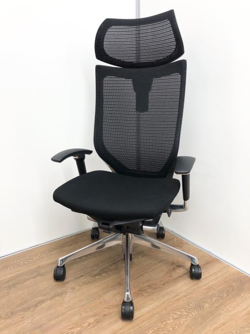 【オフィスの執務室、会議室におすすめ!】■オカムラ(okamura)製 バロン(Baron)チェア 肘付き ハイバック ■背・座面メッシュ ■可動肘 ■ヘッドレスト付き ■ブラック【硬めの座面が大人気!国産メッシュチェアの代表格!】