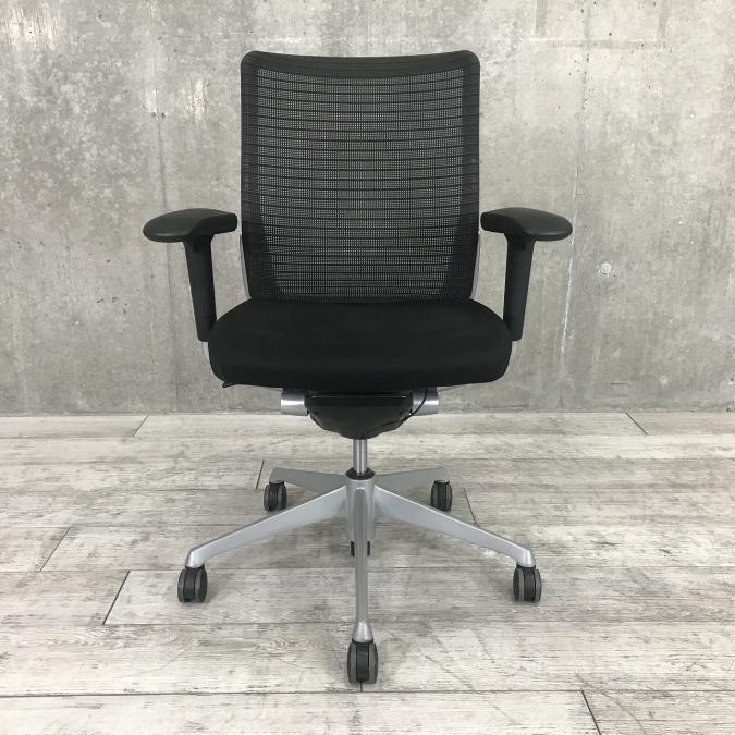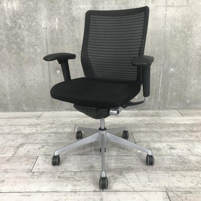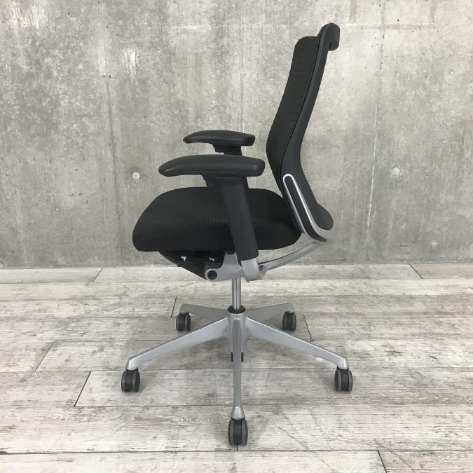 【3脚入荷】渋い!ブラックカラーコーラル(Choral)チェア※可動肘かけシルバーフレーム仕様◆オカムラ製【T11】- 埼玉本店