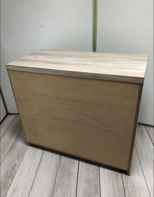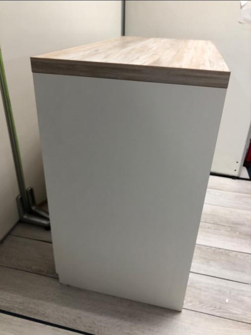 - かなり強い濃い黄ばみ・変色が商品全体にある。(例、天板、正面、背部、サイド部分にある。)