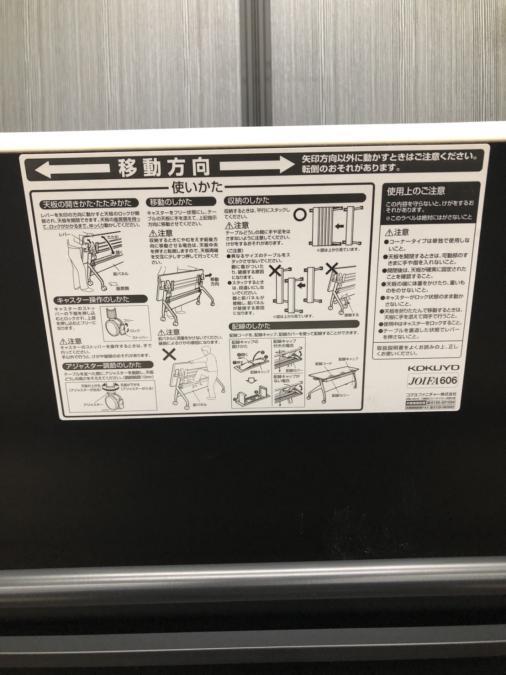 - 一部不具合あり天板歪み、アジャスター無し、キャスター使用不可ようなそのテーブルの本来の効用を果たすための機能以外の一部が使用不可な状態。(例、キャスターロッ ク機能使用不可、棚板無し等がある。)