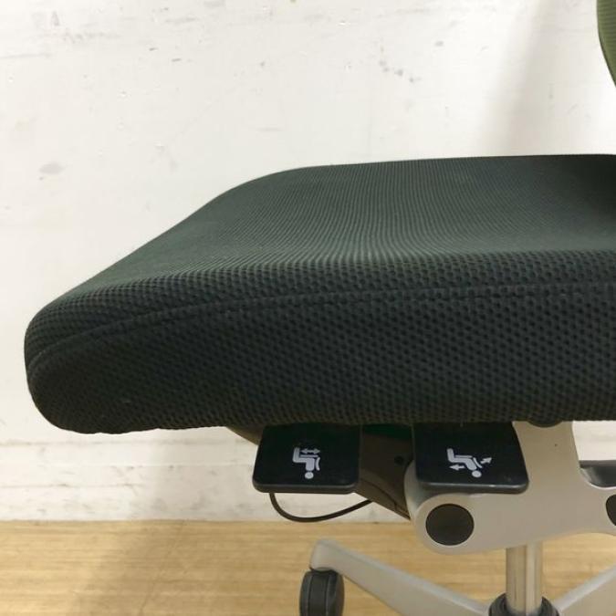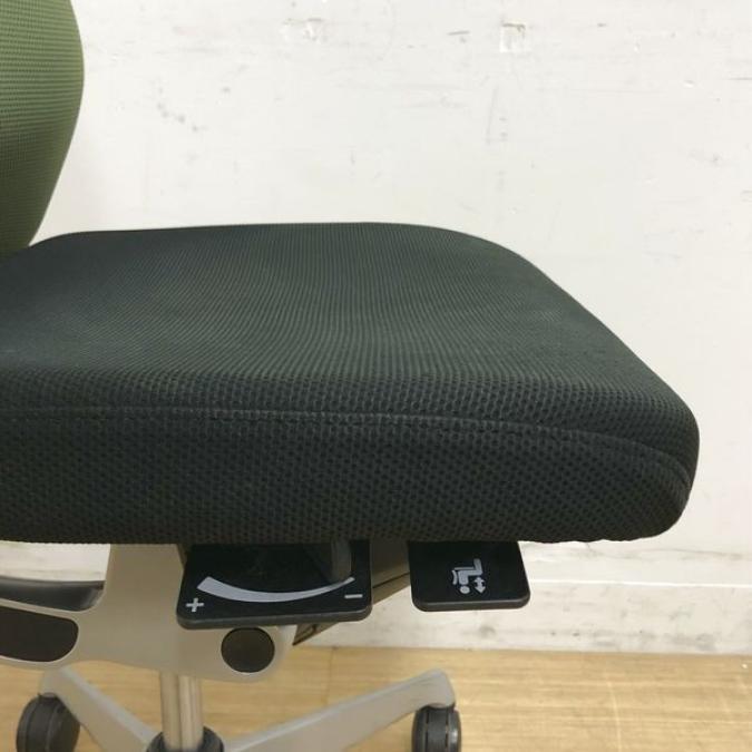 座面の高さや前後などの基本的な調整レバーが座面裏の前方に集約されており、姿勢を変えずに調節ができます。