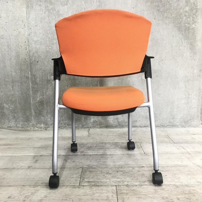 【キャスター付き】【積み重ねできる省スペースチェア!】コクヨ(KOKUYO)スタッキングタイプ プロッティ ■オレンジ色【T8】- 埼玉本店