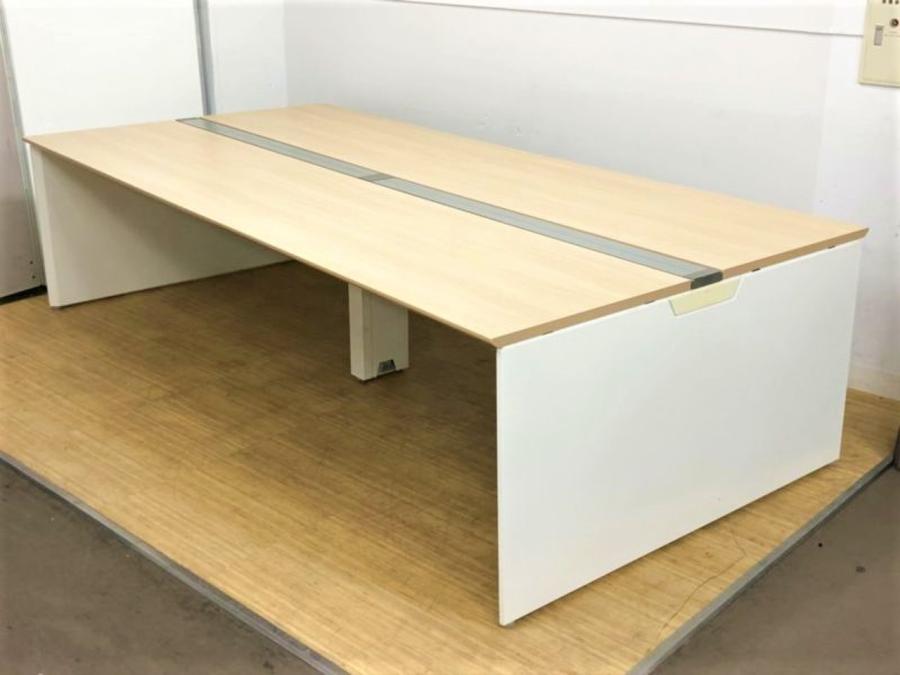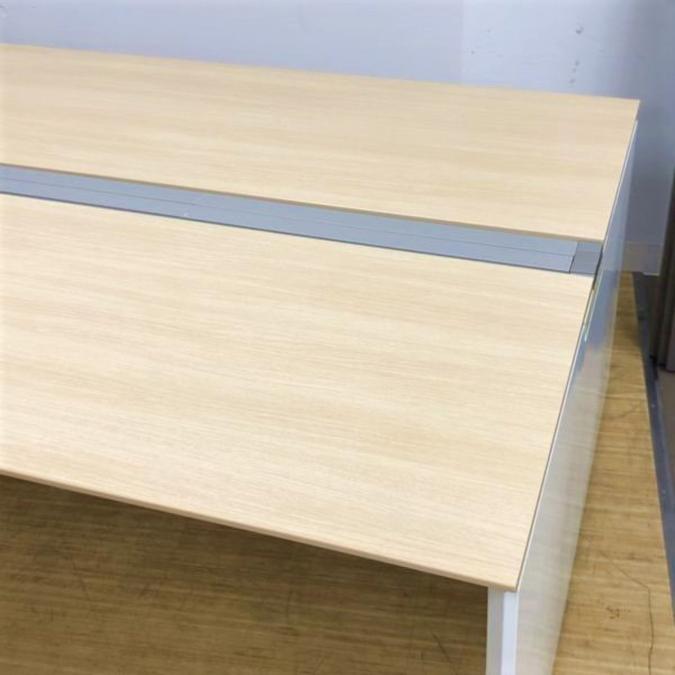 【倉庫在庫】W3000(W1500+W1500)×D1400 天板:ネオウッドライト 脚:ホワイト オカムラ プロユニットフリーウェイ- 名古屋千種店