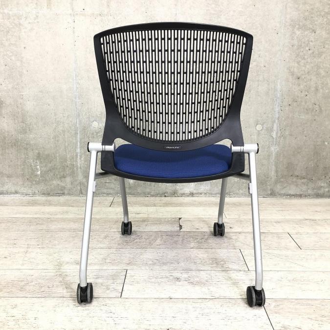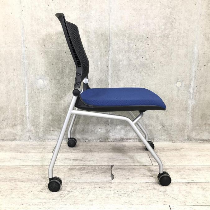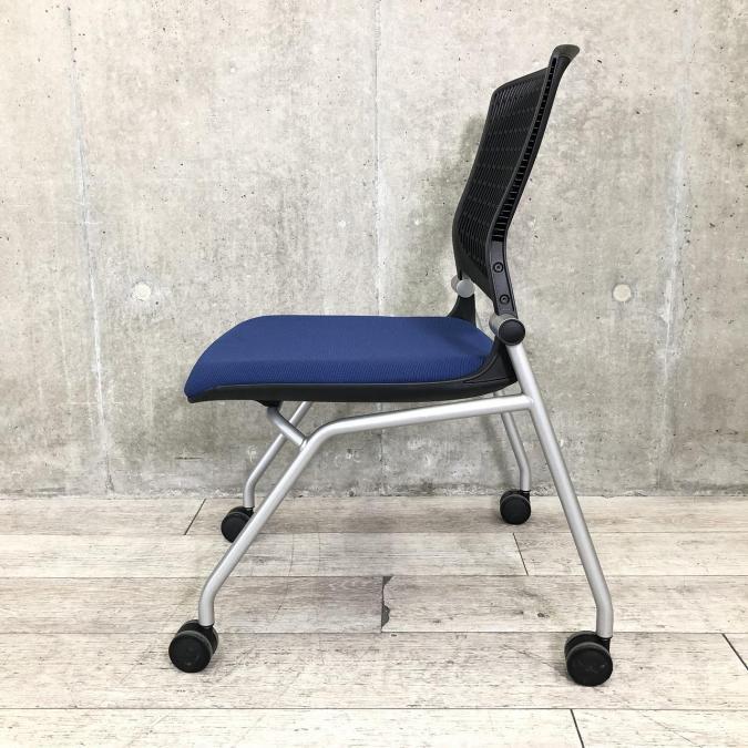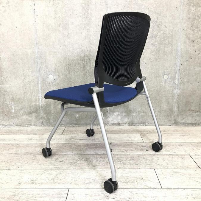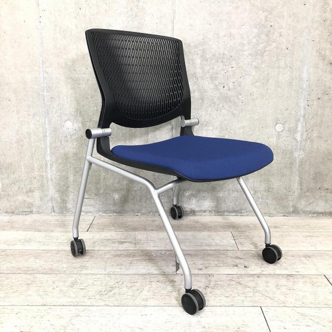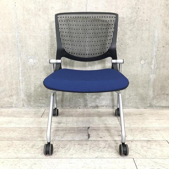 小肘付ネスティングチェア/背面クッション付き/ネイビー/オカムラ製/福岡/天神/博多/中古/安い