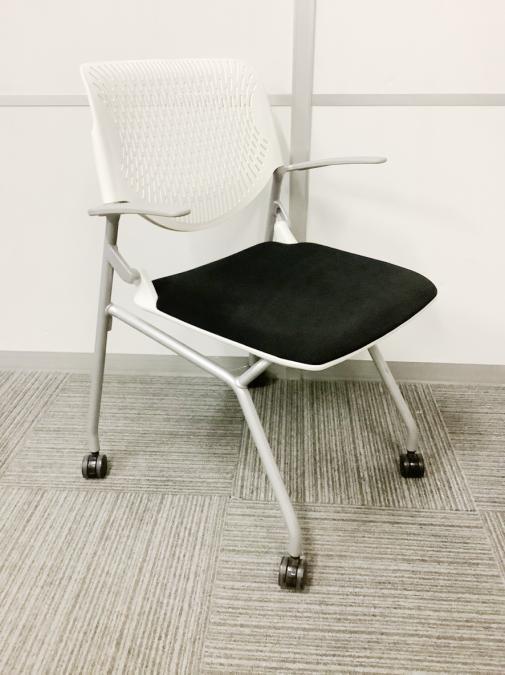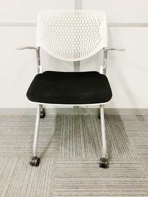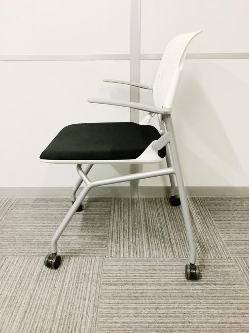 【肘付でリラックス!】■オカムラ ルナシリーズ ネスティングチェア ブラック ホワイトフレーム【在庫入替】- 川崎店