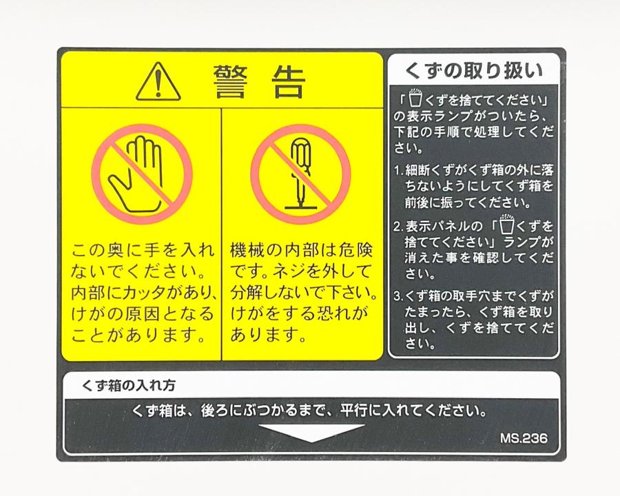 | 最大細断枚数 | 約65枚【A4PPC(64g/㎡)】新品時 |