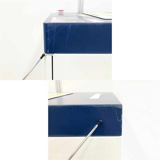 スイッチを押すと緊急停止し、スイッチを右回転させると元に戻ります。