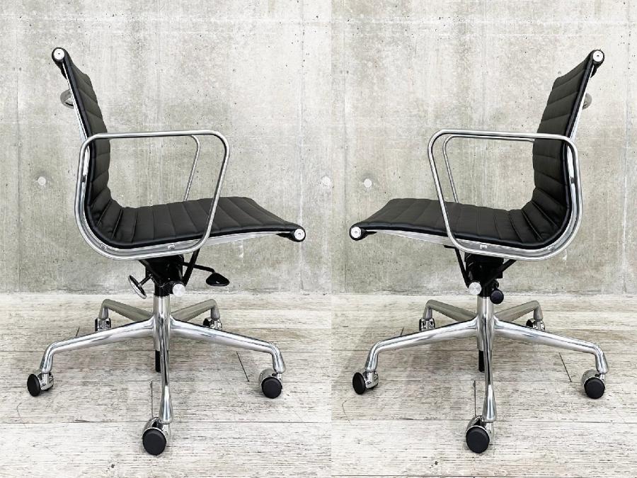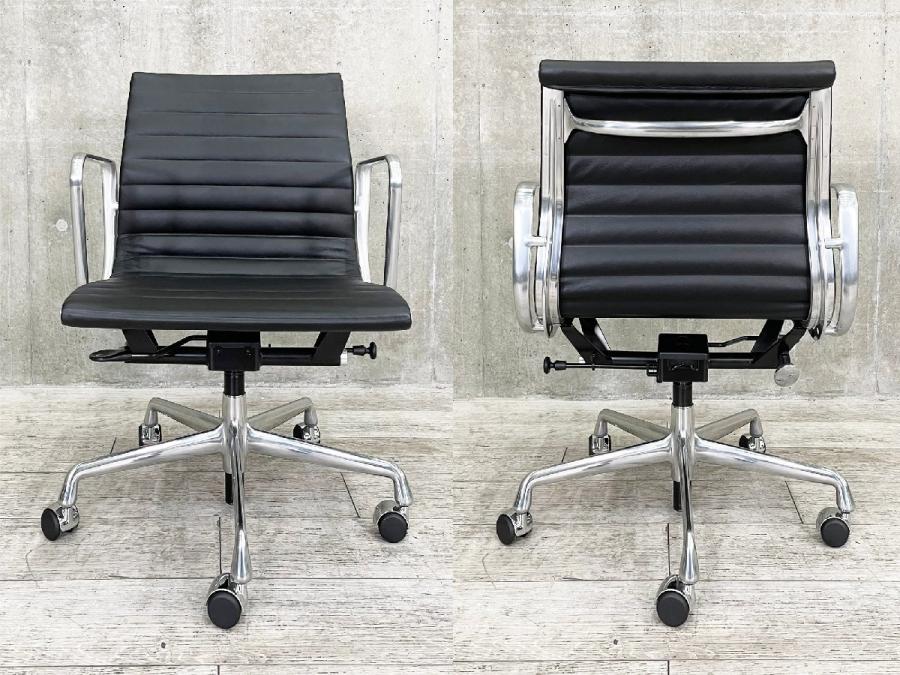 B)HermanMiller/ハーマンミラー イームズ アルミナムチェア ガス圧昇降 ローバック ブラック 本革在庫がある店舗一覧