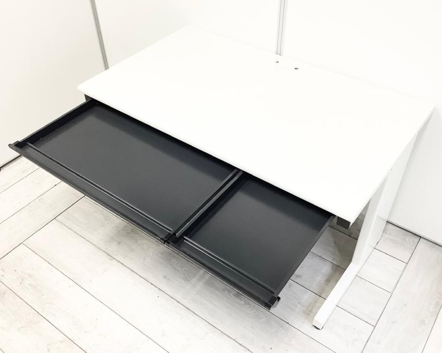 【定番サイズの幅1200㎜!人気のホワイト平デスク!】■プラス(PLUS)製 フラットラインシリーズ 平机 幅1200mm ■引き出し付き ■色:ホワイト
