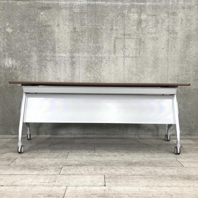 希少な暗い木目調天板!おしゃれな会議室を作成したい方におすすめ!幕板付!移動もラクラクで重ねて収納可能! ■コクヨ/ブラウン- 立川・八王子店
