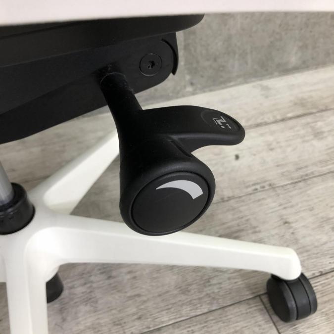 - 座面右下のダイヤル操作で、リクライニングの強弱調整が行えます。これまでのダイヤル式よりも、少ない回転数で、最弱?最強の調整が可能です。