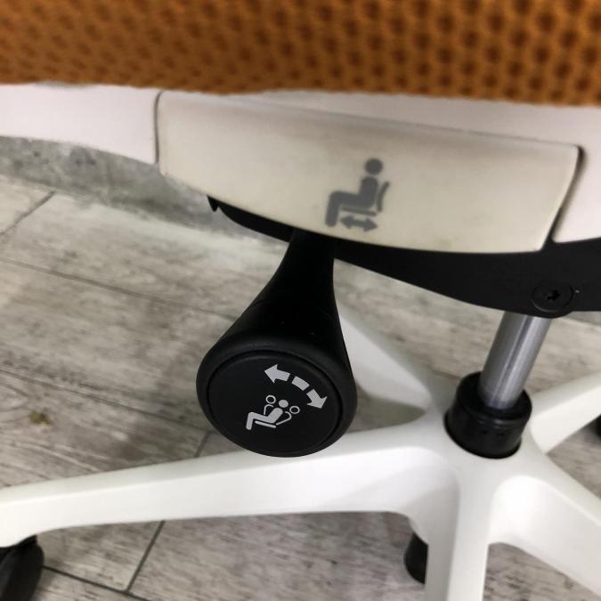 - 座面左下のダイヤルでリクライニングの固定と解除が行えます。 前傾ポジションをとることも可能です。